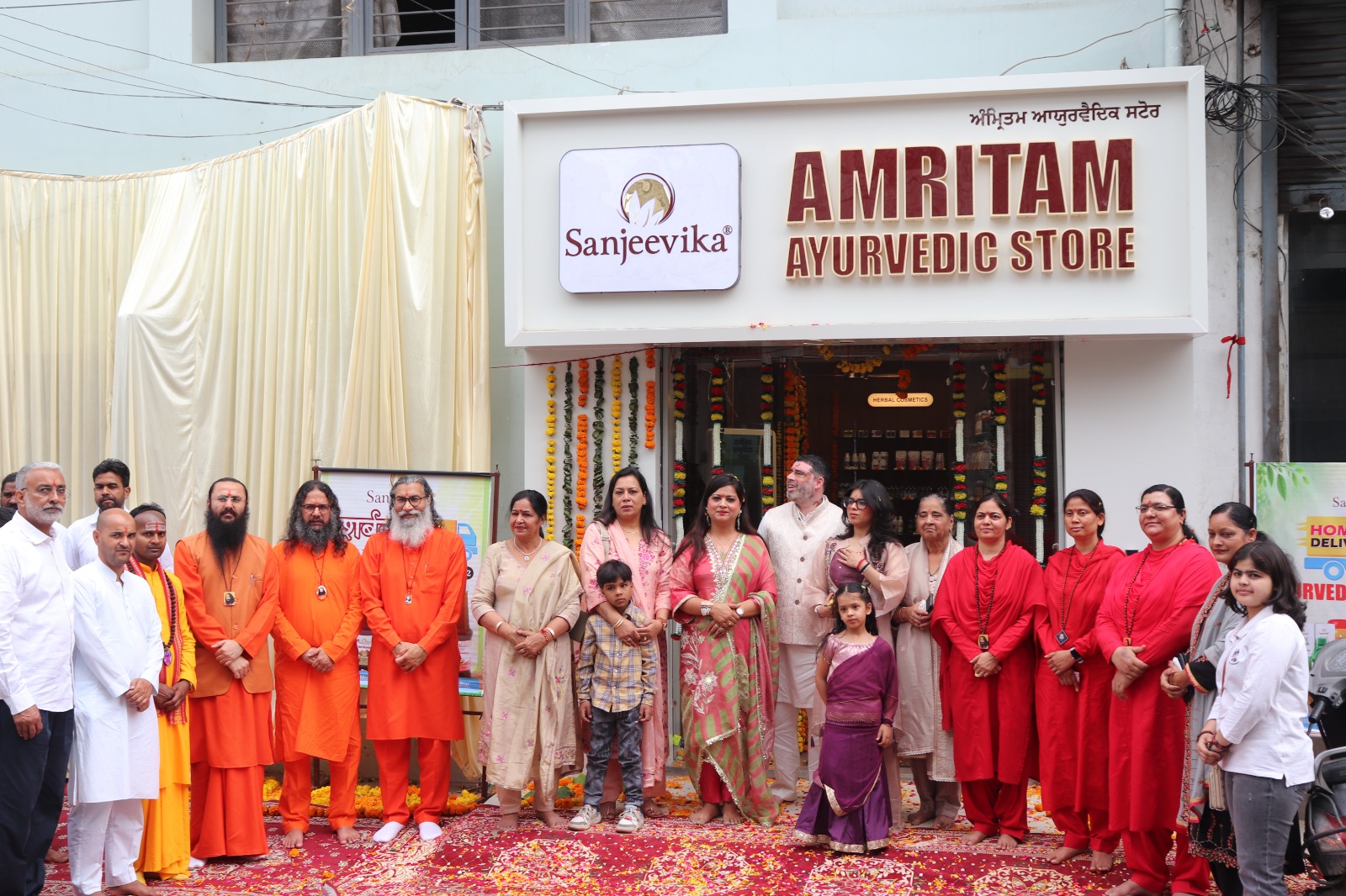 दिव्य ज्योति जागृति संस्थान के तत्वावधान में “श्री आशुतोष महाराज आयुर्वैदिक फार्मेसी – संजीविका उत्पादों” के नए आउटलेट का शुभारंभ स्पोर्ट्स मार्केट, बस्ती नौ में हर्षोल्लास के साथ किया गया। इस अवसर पर स्वामी गिरधरानंद जी, स्वामी प्रभु रमननानंद जी, स्वामी सज्जनानंद जी एवं जालंधर आश्रम की प्रमुख साध्वी पल्लवी भारती जी, साध्वी शशि प्रभा भारती जी, साध्वी त्रिनयना भारती जीवन पारिवारिक सदस्य टिप टॉप पैकर्स से दिवेश खुराना ने भारतीय संस्कृति एवं परंपरा के अनुरूप विधिवत पूजन-अर्चना से किया गया।