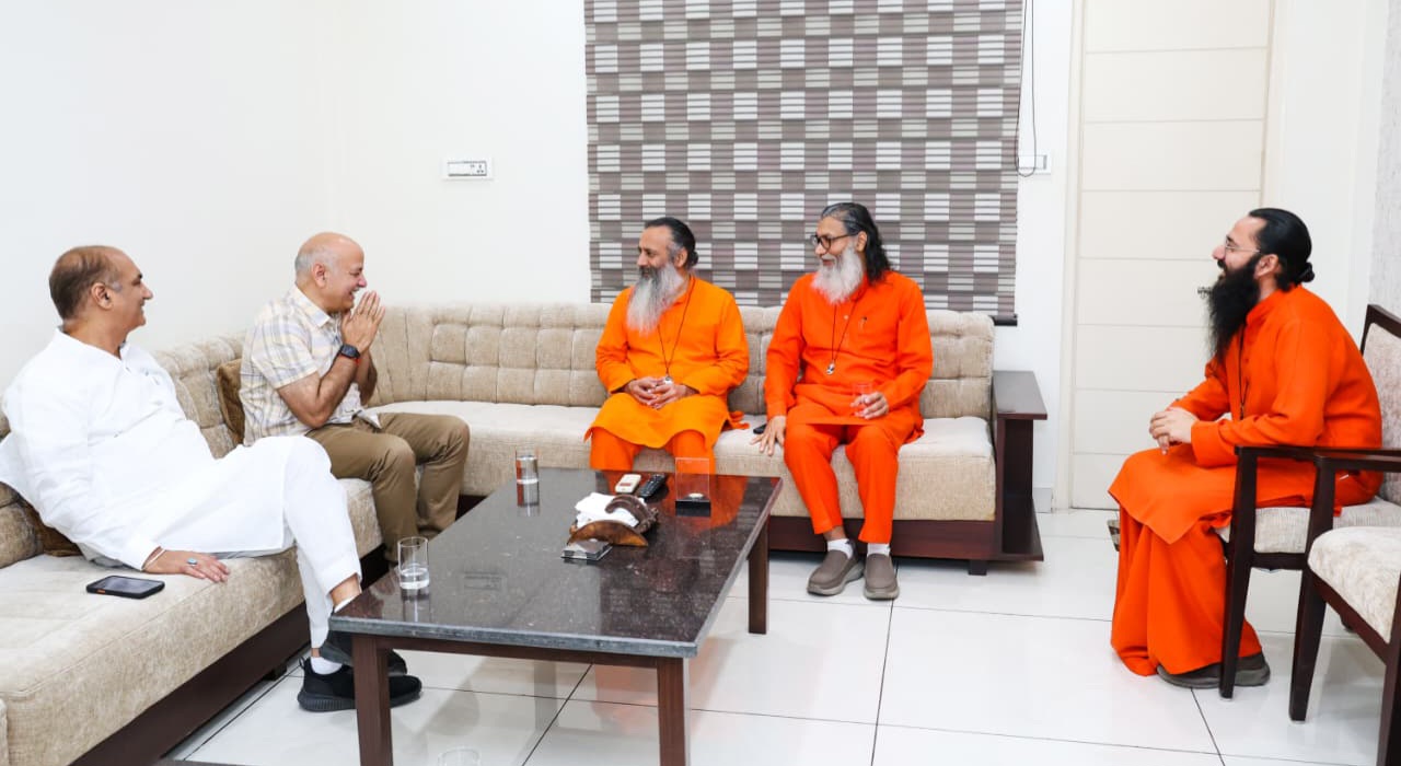 नूरमहल स्थित दिव्य ज्योति जागृति संस्थान पहुँचे मनीष सिसोदिया व दीपक बाली